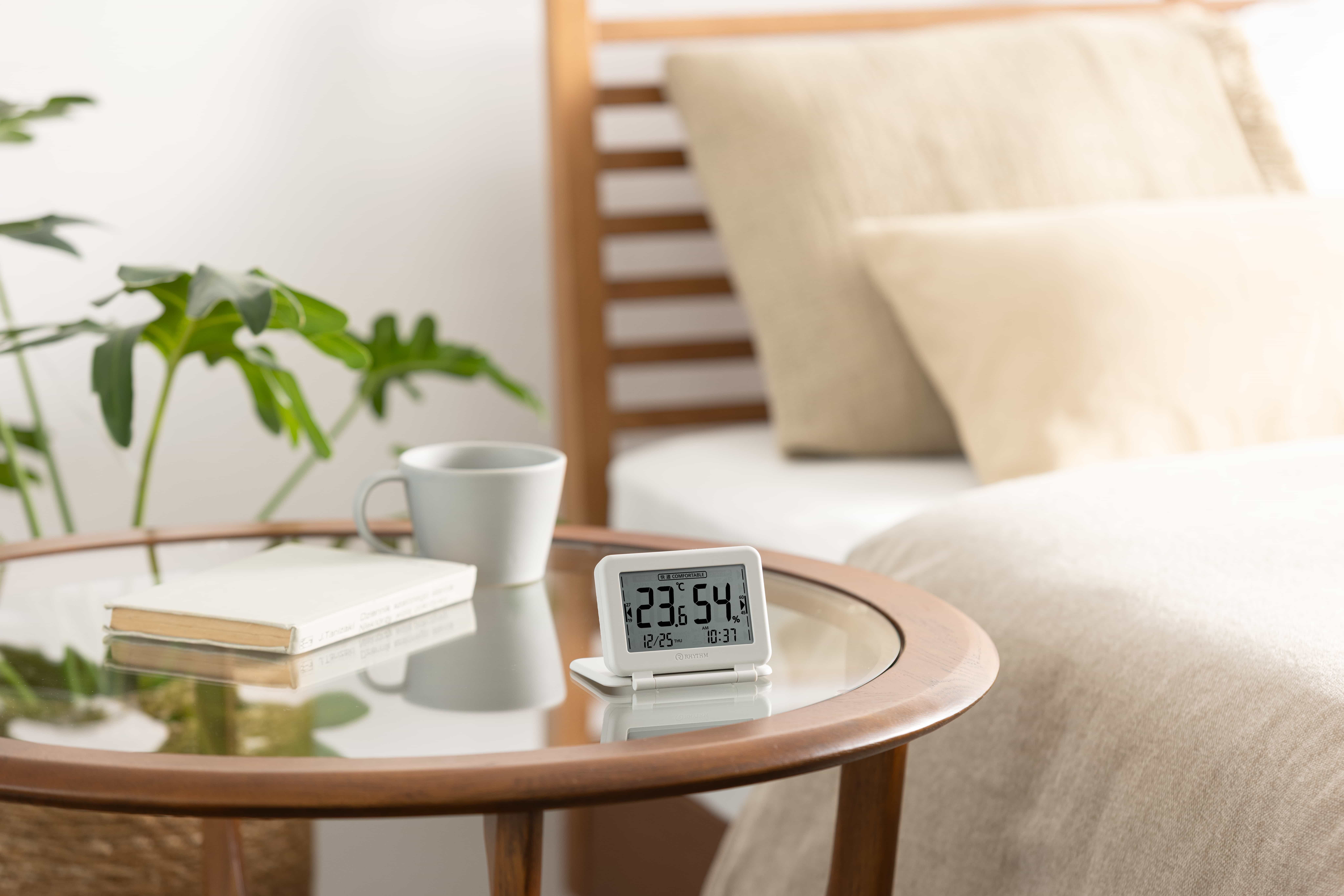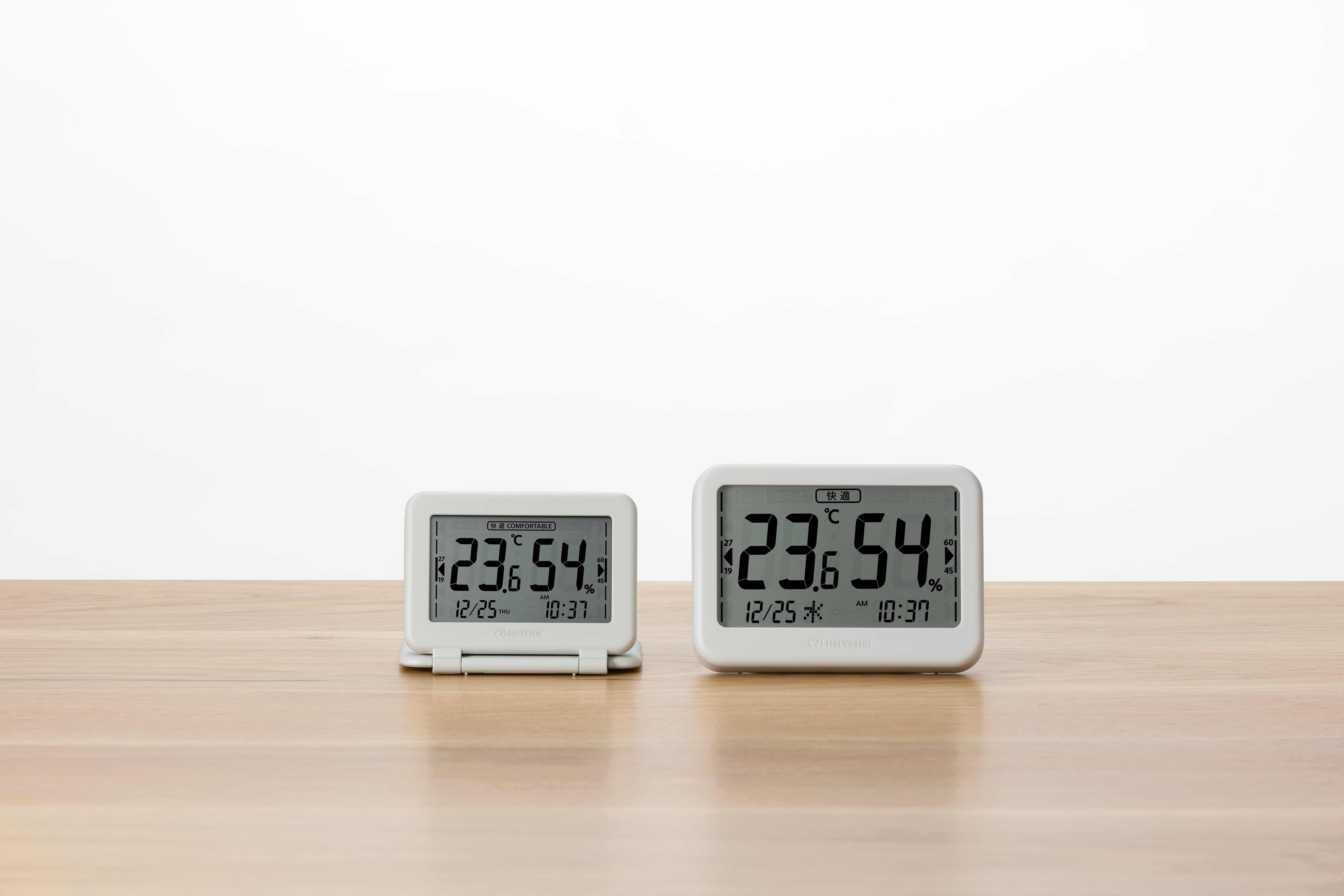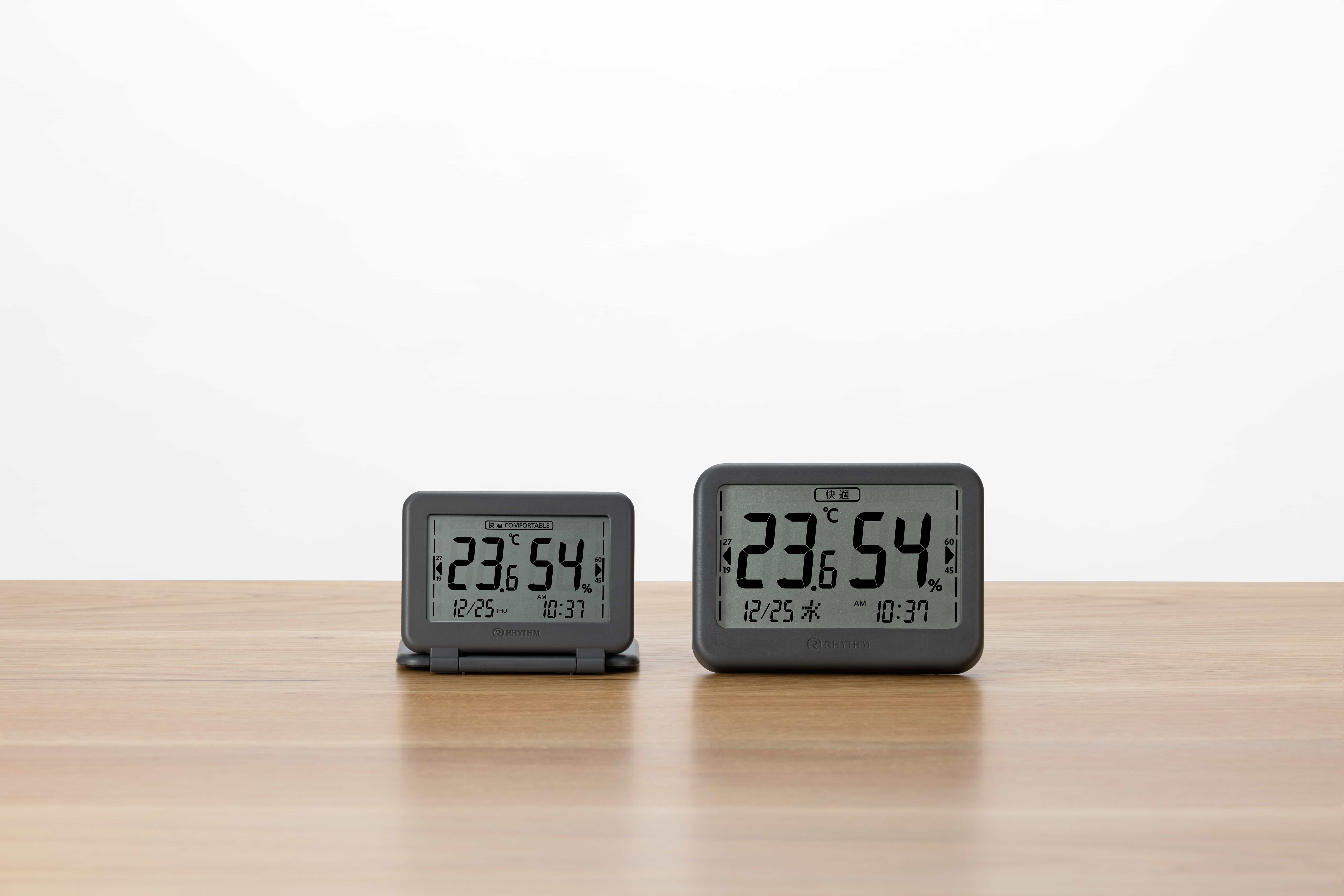 温湿度計としても時計としても使用可能です。