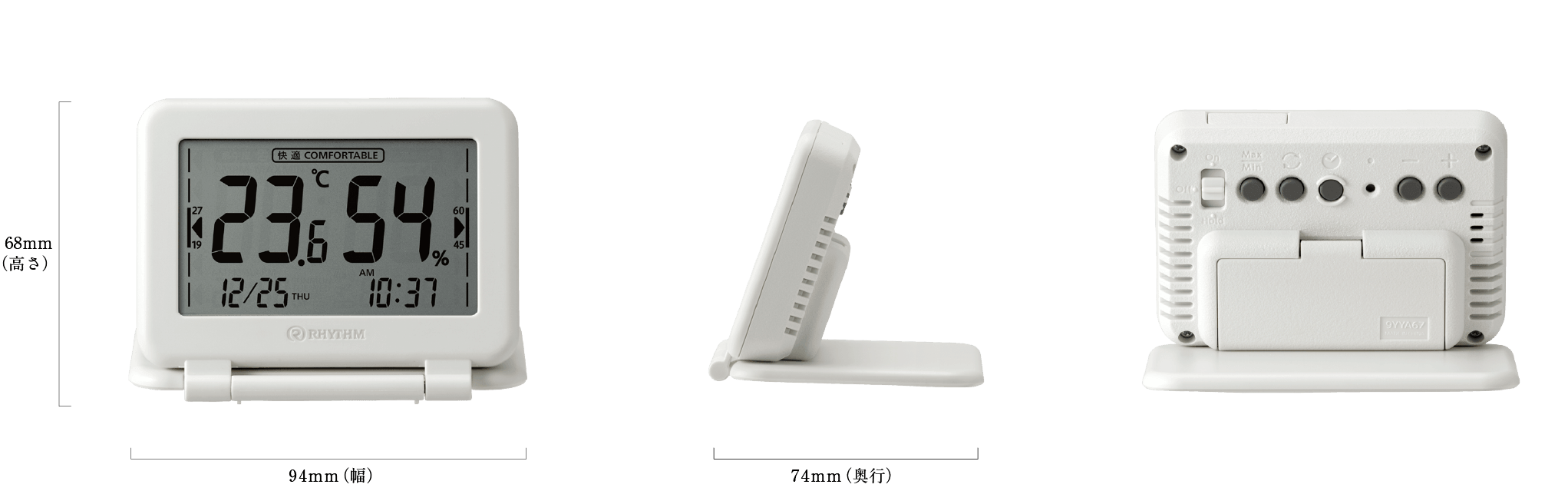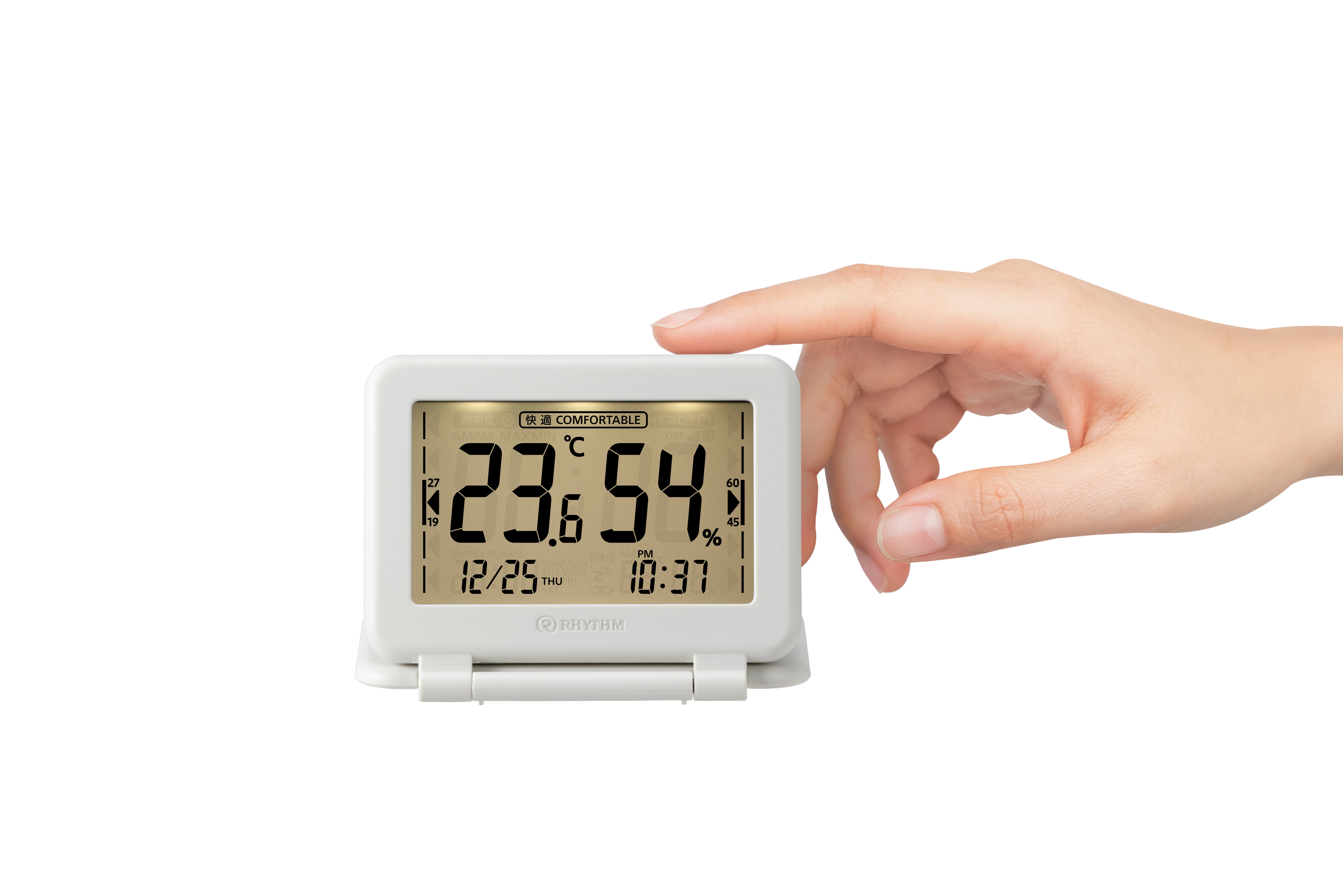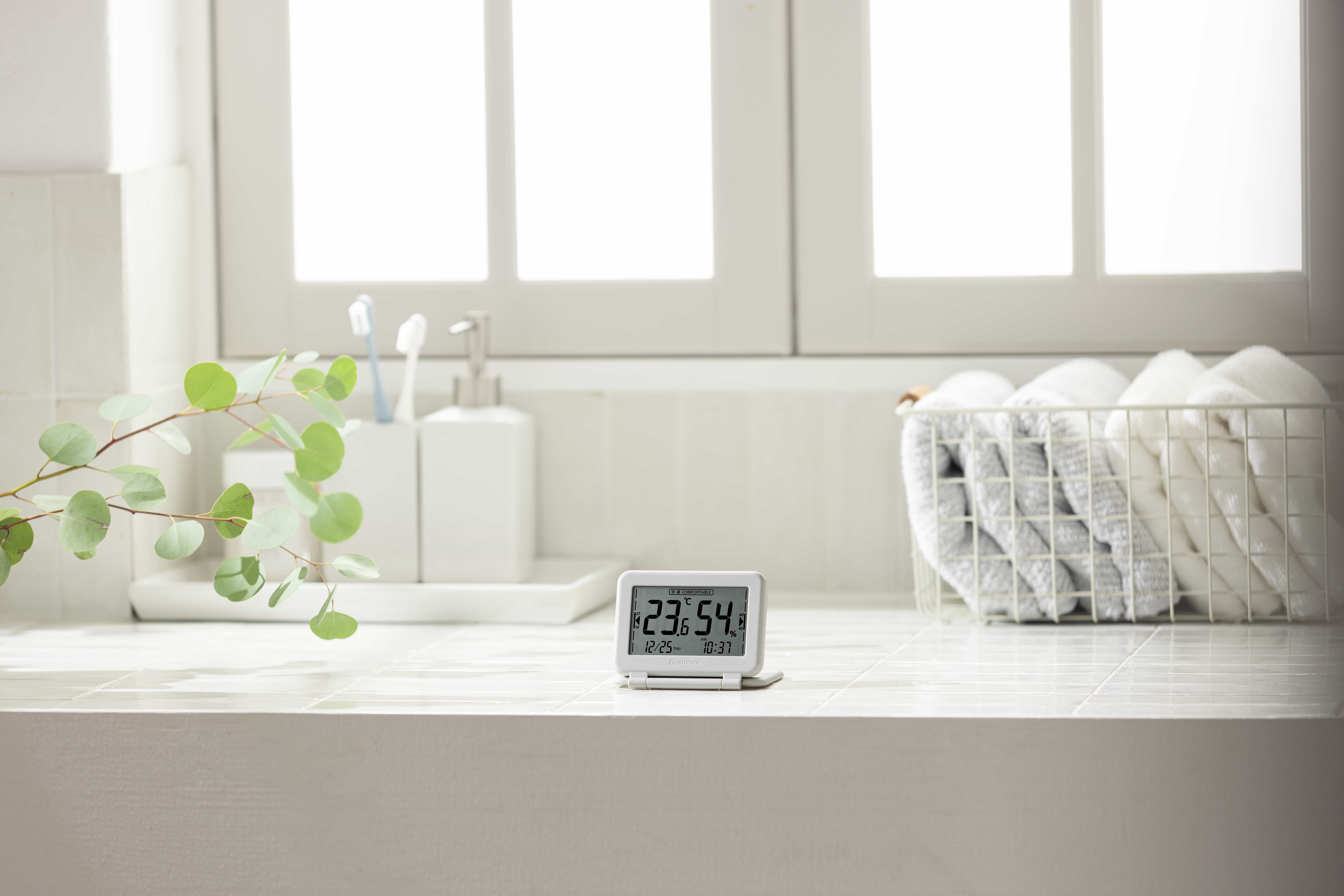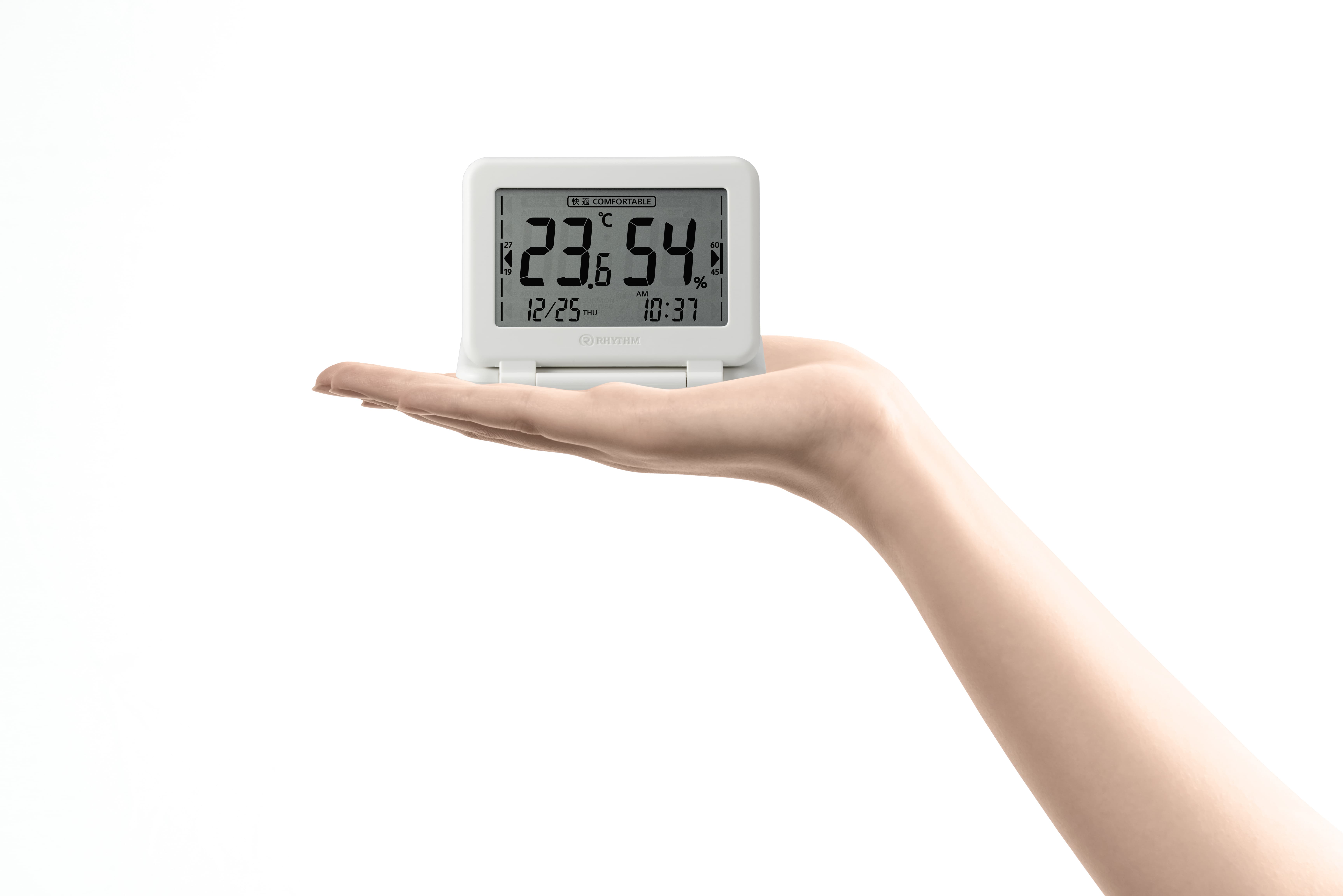 温湿度計としても時計としても使用可能です。