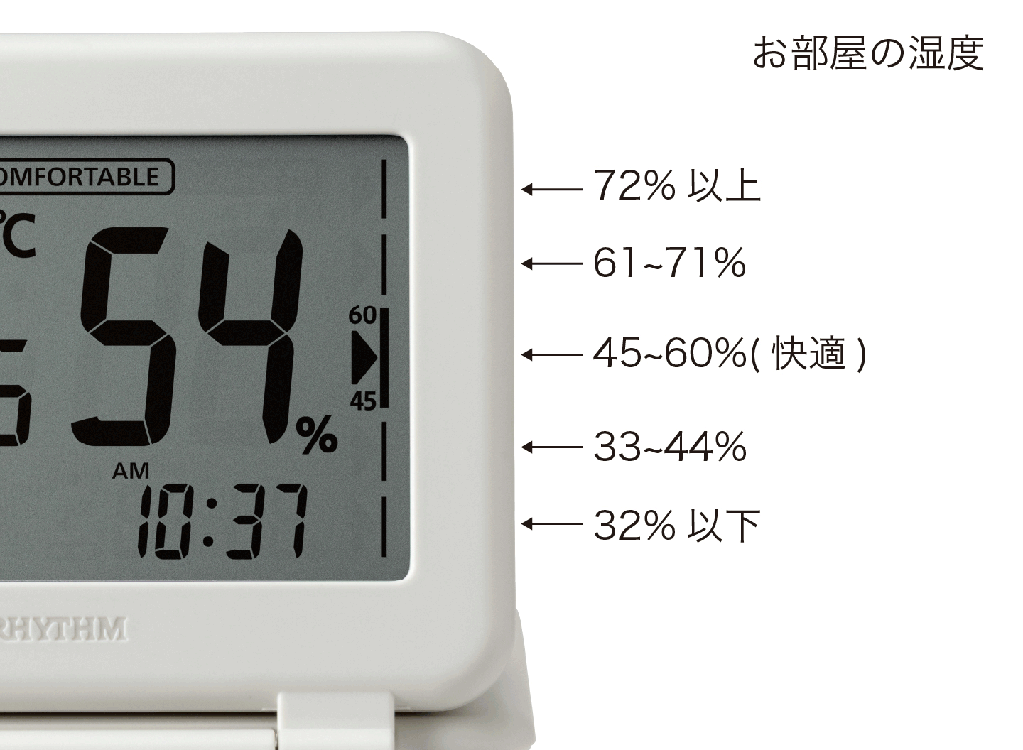 - 「%RH」は相対湿度を表しています。天気予報など一般的には「%」で表示されています。