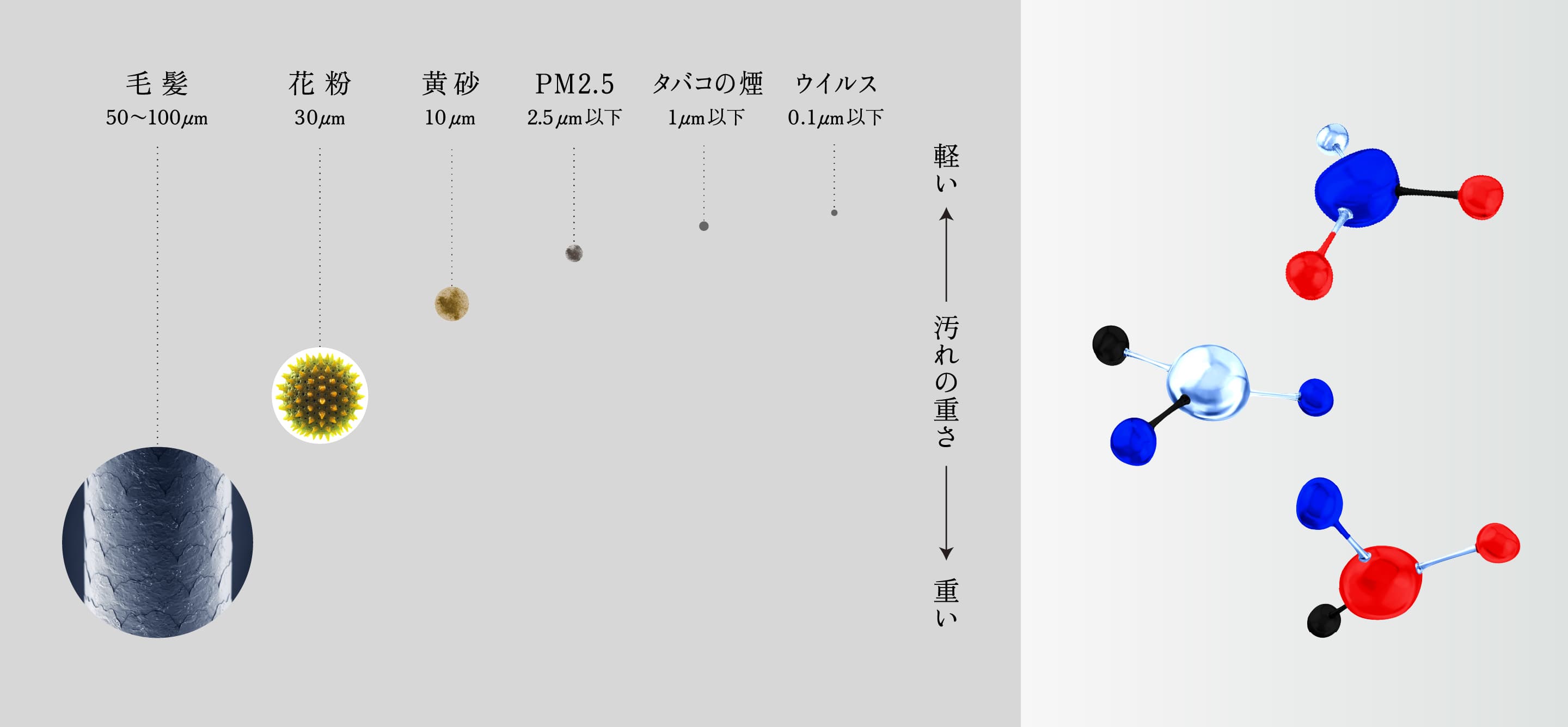 左=粒子サイズのイメージ 右=ニオイのイメージ
