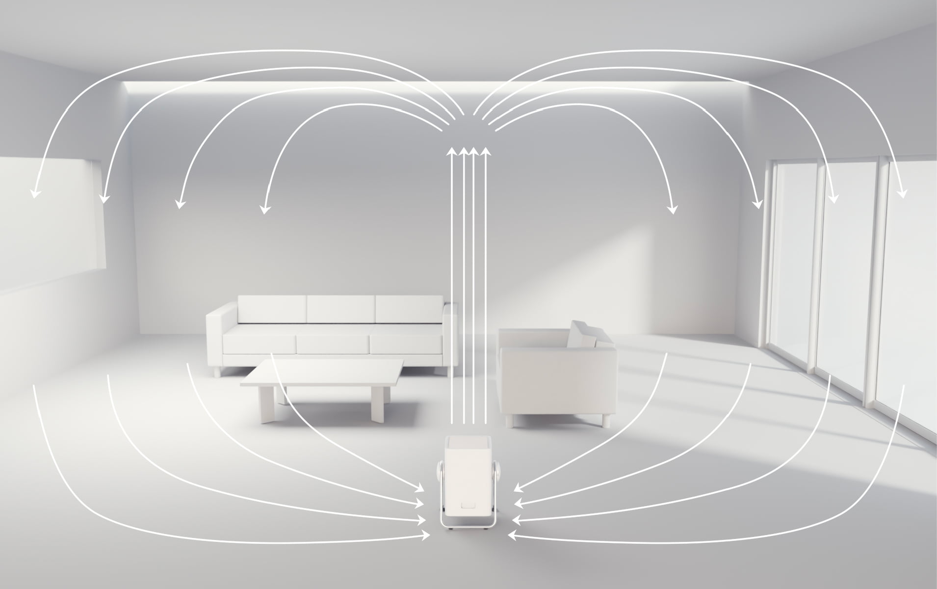 部屋全体の空気の汚れを効率よく空気清浄するためには、「循環気流」が必要です。