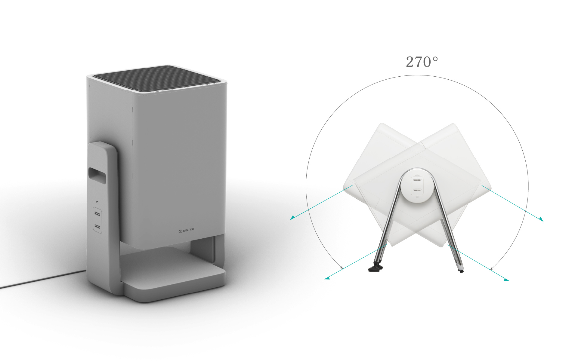 しかも、下方から上方まで240度回転する今まで見たこともない空気清浄機。