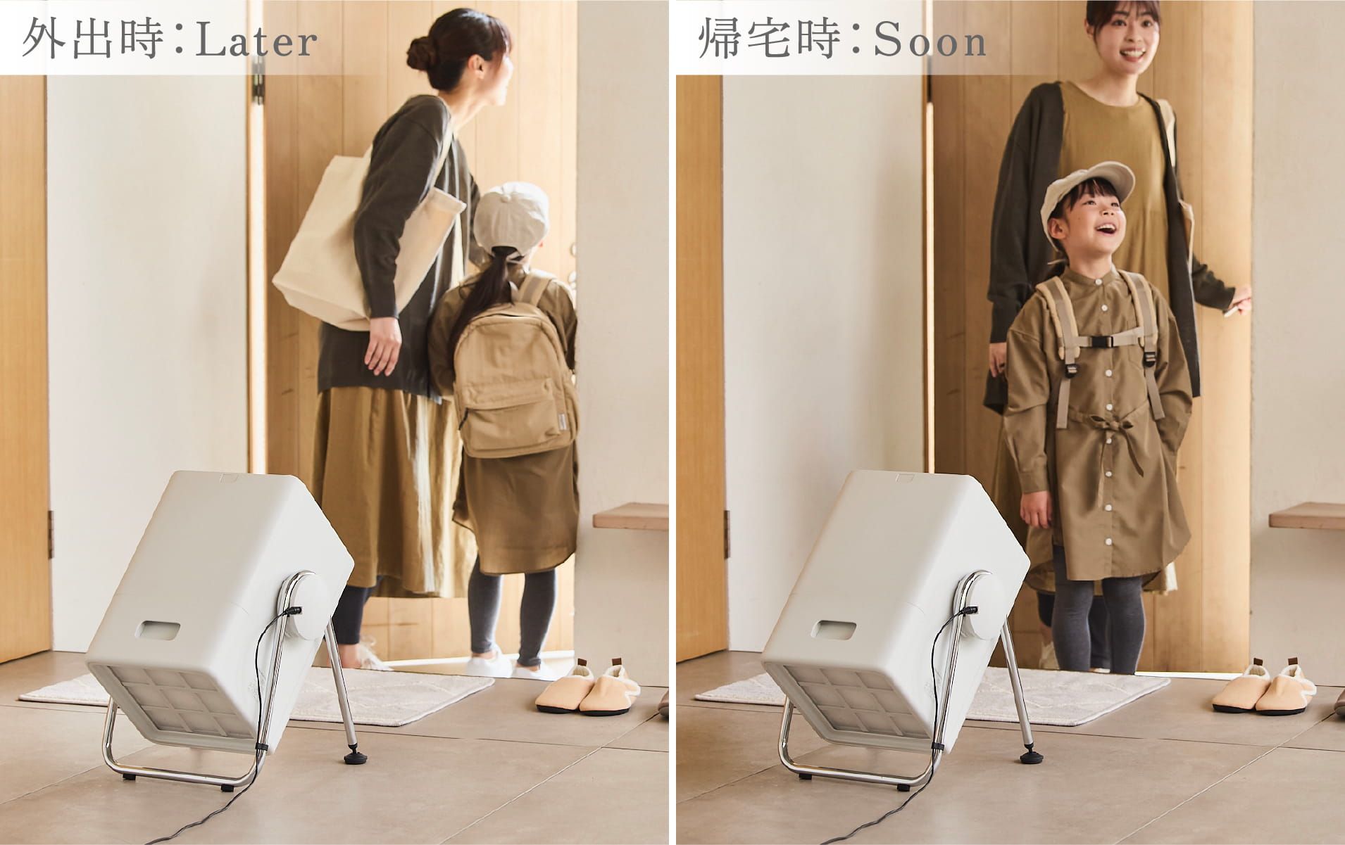 「Later」ボタンを押せば、外出中に部屋の空気の汚れをきれいに整えます。