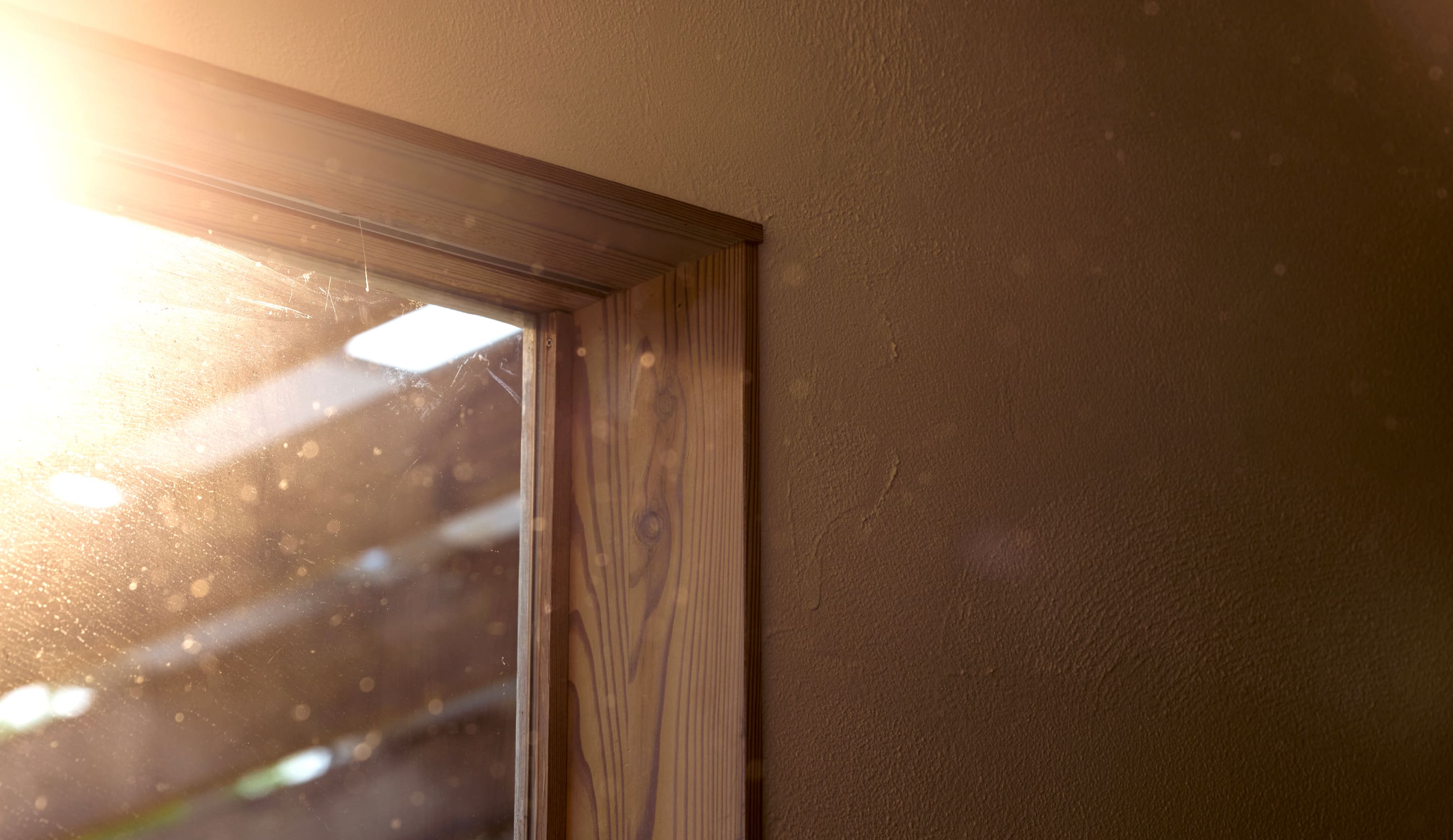 身体を伸ばしながらふと差し込まれた朝日の光の筋を観察すると、塵が舞っていることに気づきます。