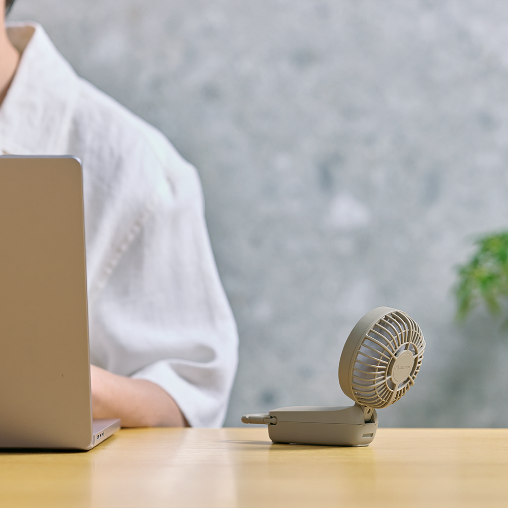 - 連続使用時間:リズム風:約15h / 弱:約10h / 中:約5h / 強:約2h / ターボ:約1h ※満充電時