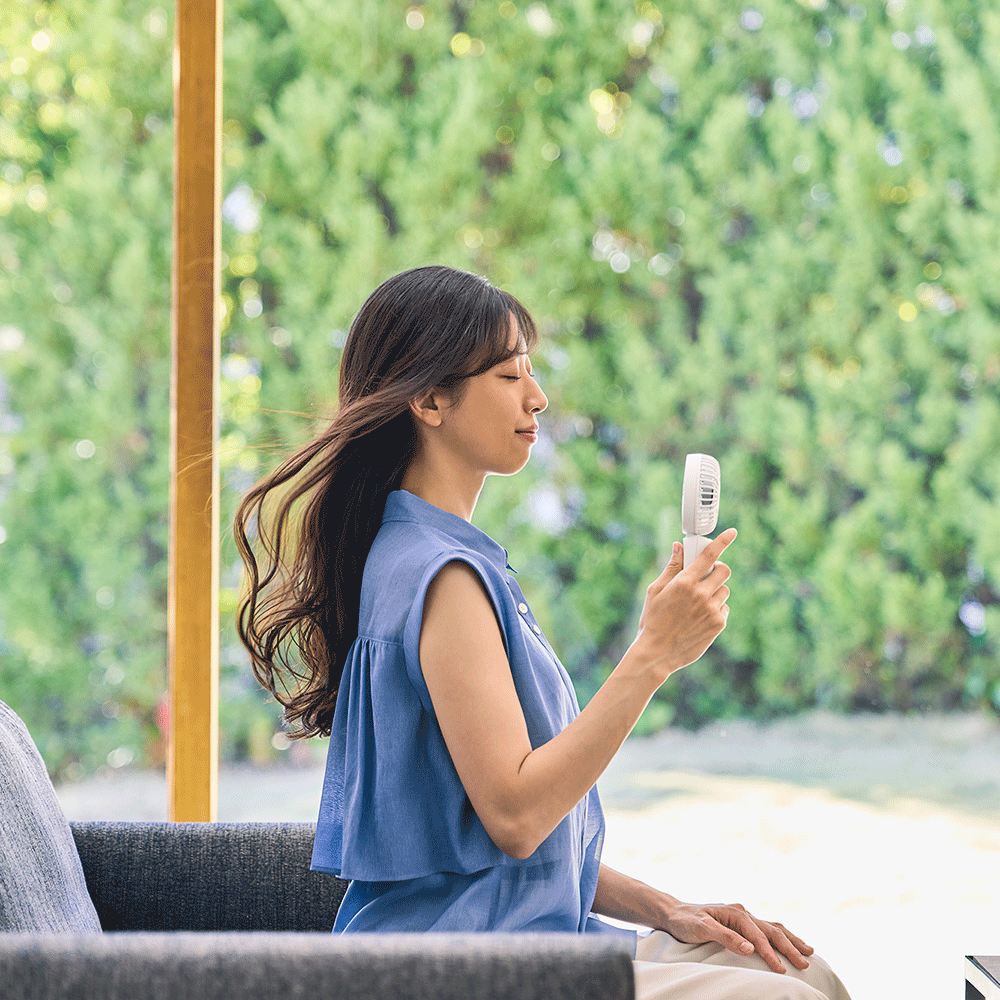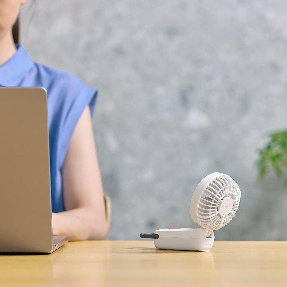 - 連続使用時間:リズム風:約15h / 弱:約10h / 中:約5h / 強:約2h / ターボ:約1h ※満充電時