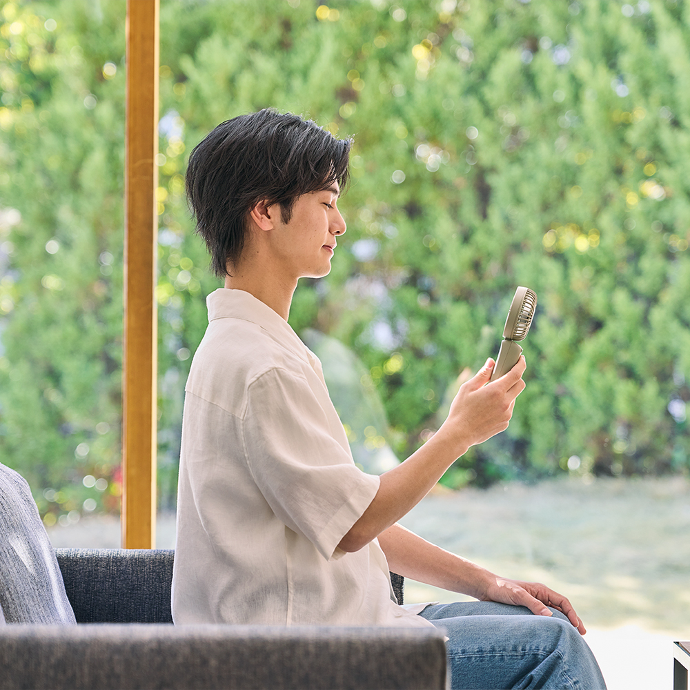 - 連続使用時間:リズム風:約15h / 弱:約10h / 中:約5h / 強:約2h / ターボ:約1h ※満充電時