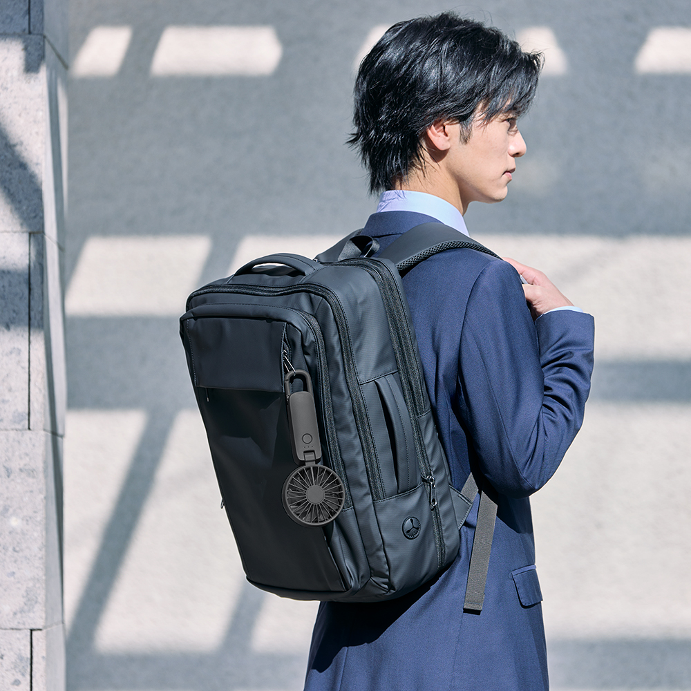 基幹部品である羽根を一から完全新設計し、送風効率を高めることで、風量を前モデル比約108%に向上させています。また、最大風量で使える「ターボ」運転の稼働時間延長や、充電時間の短縮、さらにすっきりとしたデザインへのリニューアルなどを行い、Silky Wind Mobileにシリーズ最高の性能と使いやすさを追求したモデルです。