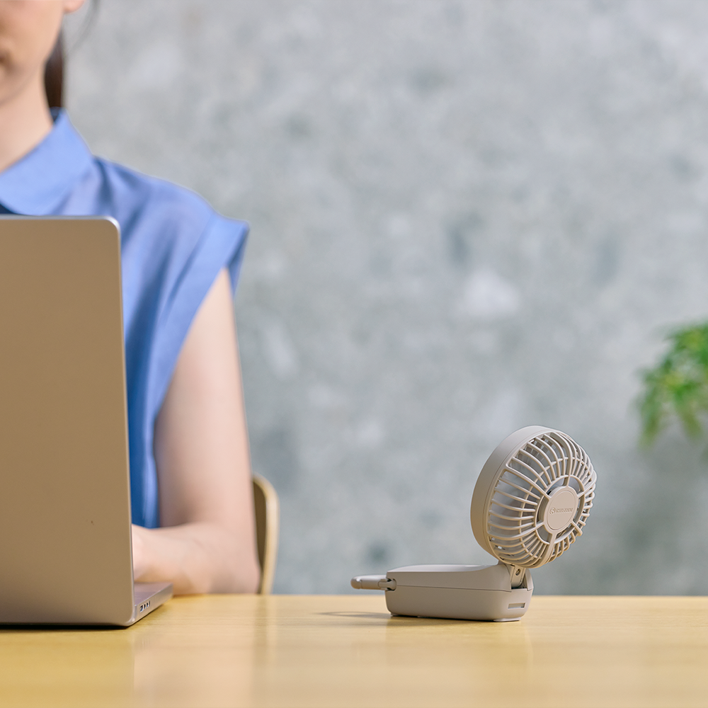 - 連続使用時間:リズム風:約15h / 弱:約10h / 中:約5h / 強:約2h / ターボ:約1h ※満充電時
